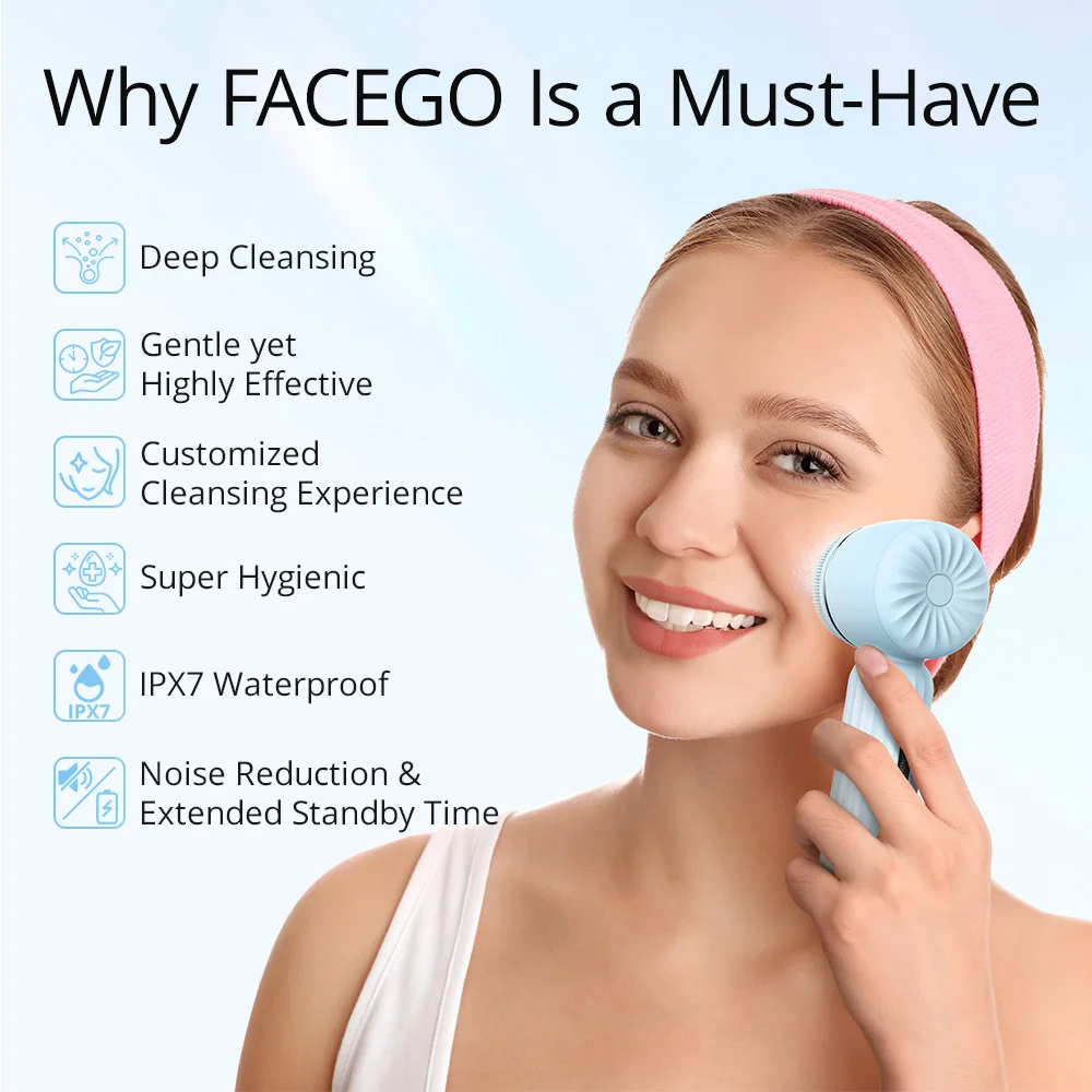 IPX7 Waterproof Ultrasonic Facial Cleansing Brush – Rechargeable Exfoliator for Men & Women
