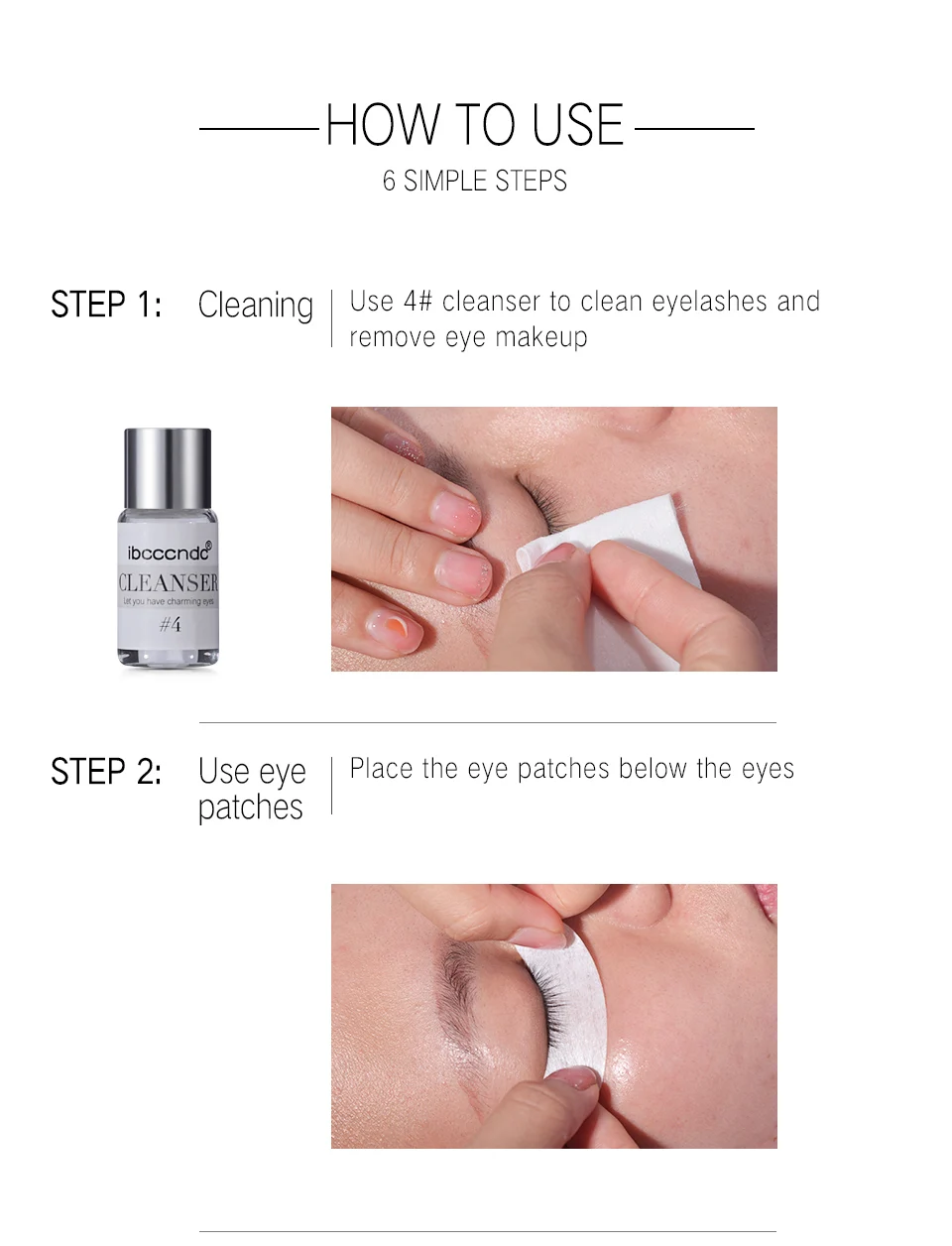 STEP 1: using cleanser lotion to clean off the oil, dust and makeup residue on eyelashes