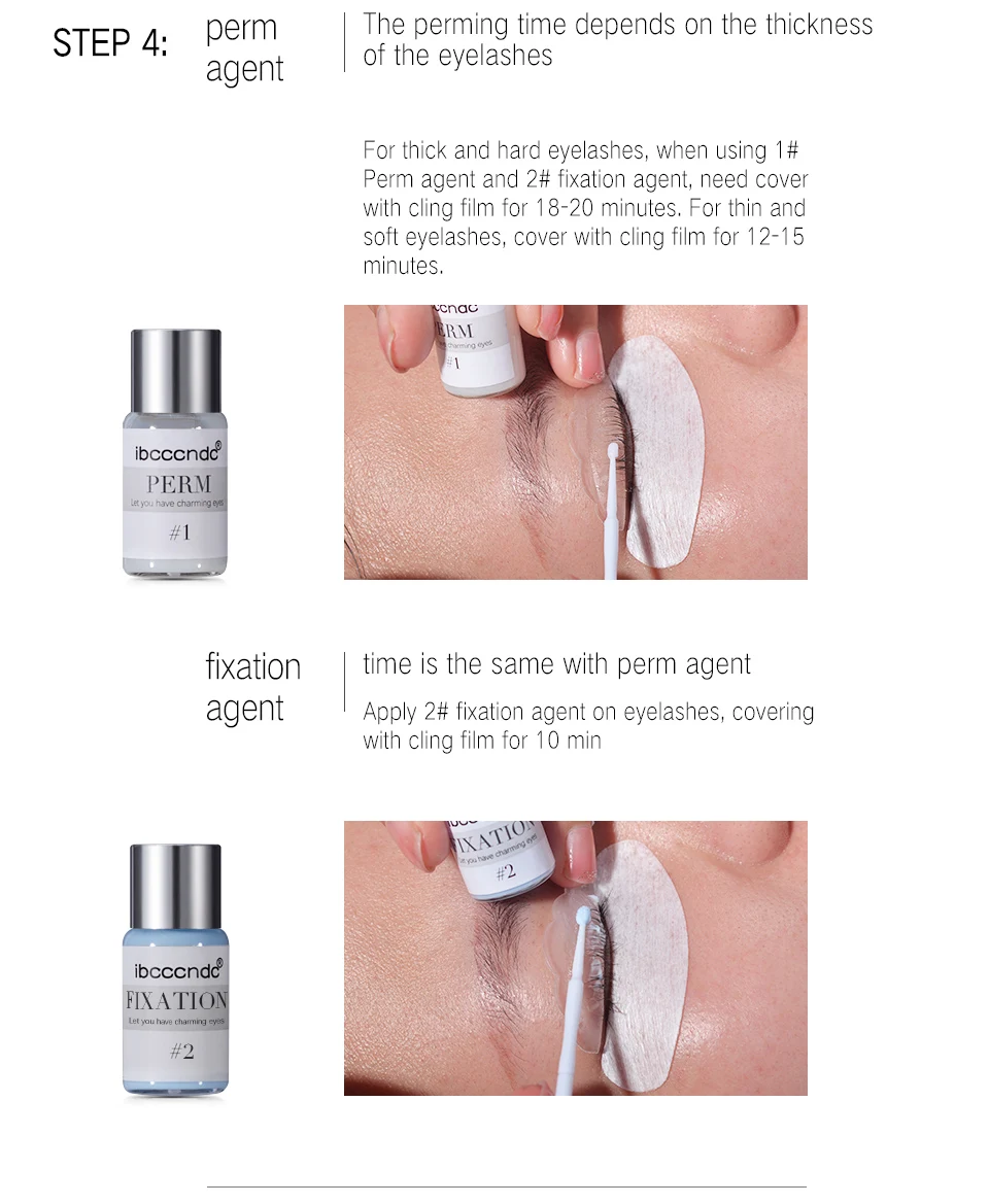 STEP 8: apply fixation lotion on the eyelashes, covering the cling film on eyelashes for 10 min